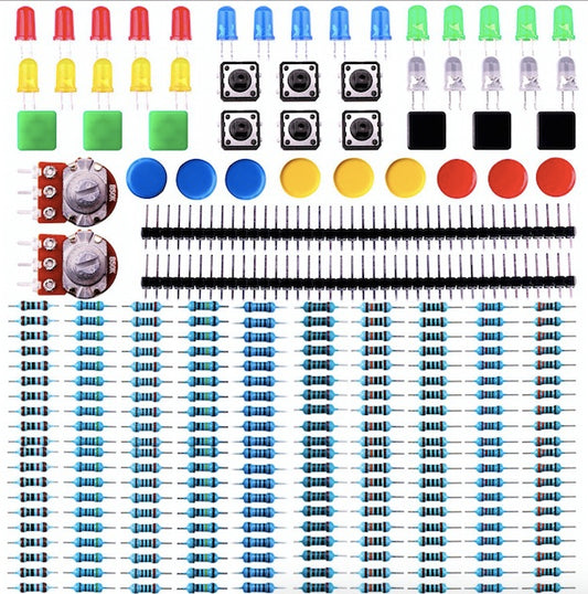 Electronics component pack with resistors, LEDs, Switch, Potentiometer for Arduino UNO, MEGA2560, Raspberry Pi