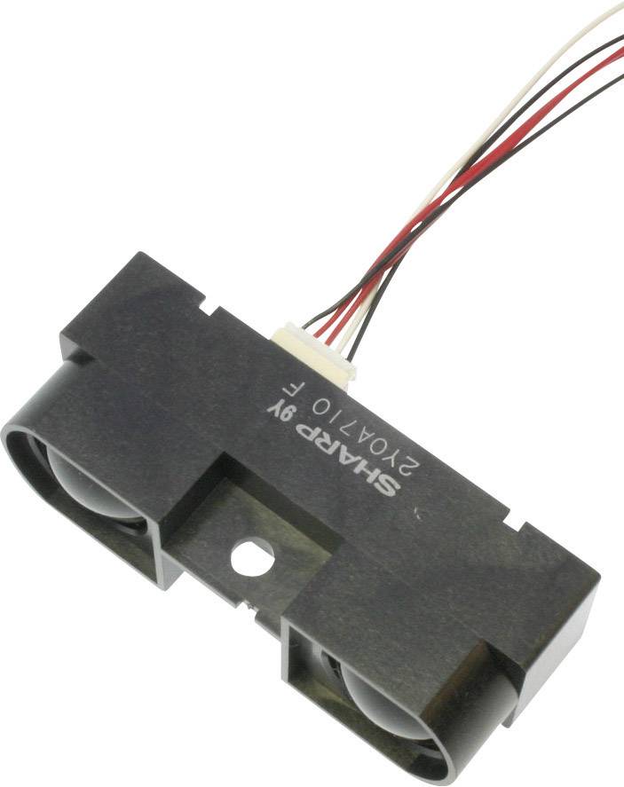 GP2Y0A21YK0F is a distance-measuring sensor unit composed of an integrated combination of PSD (position-sensitive detector), IRED (infrared-emitting diode), and signal processing circuit. This device outputs the voltage corresponding to the detection distance, so this sensor can also be used as a proximity sensor.