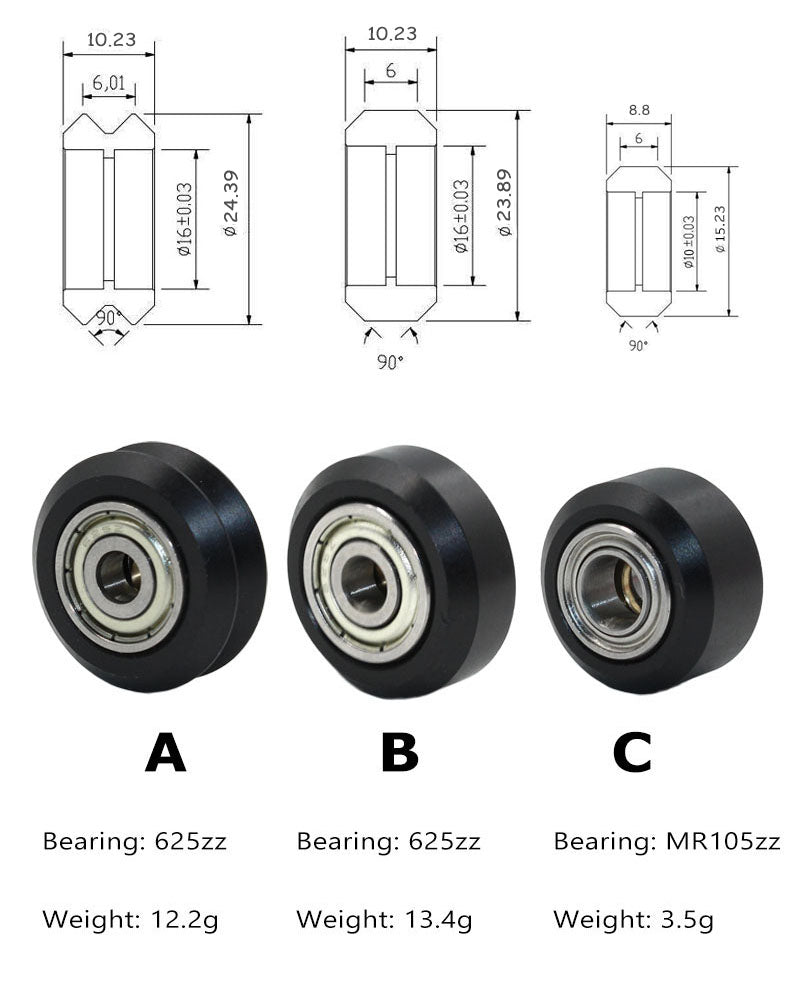 High precision CNC Black Polycarbonate Xtreme v Mini wheel with 625 bearing for Openbuilds v-slot linear rail system