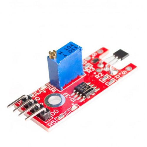 The KY-024 Linear Magnetic Hall Sensor responds when a magnetic field is present, It features a potentiometer to modify the sensor's sensitivity and offers both analog and digital outputs. Similar to the KY-003, the digital output functions as a switch that is activated or deactivated by the presence of a magnet. The polarity and relative strength of the magnetic field can be measured using the analog output, the SS49E hall-effect sensor, on which the KY-024 module is based, allows an operating voltage range of 2.7V to 6.5V. The ESP8266 and ESP32 microcontrollers, both of which operate at 3.3V, as well as our Arduino microcontroller, which operates at 5V, are ideal for this voltage range. Because the KY-024 module measures the analog signal and generates a digital signal as well, it is bigger than some other hall-effect modules. As a result, the module includes additional parts like the LM393 dual comparator and a 100k potentiometer.