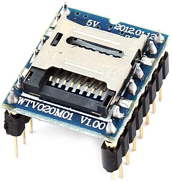 This Mini SD Card MP3 WTV020-SD module is a reusable mass storage voice module, can plug a maximum capacity of 1GB SD card memory and can load the WAV, MP3 and AD4 audio .The voice module uses WTV020SD as the core chip, with MP3 control mode, one to one key control mode, power on loop control mode and the two-line serial control mode